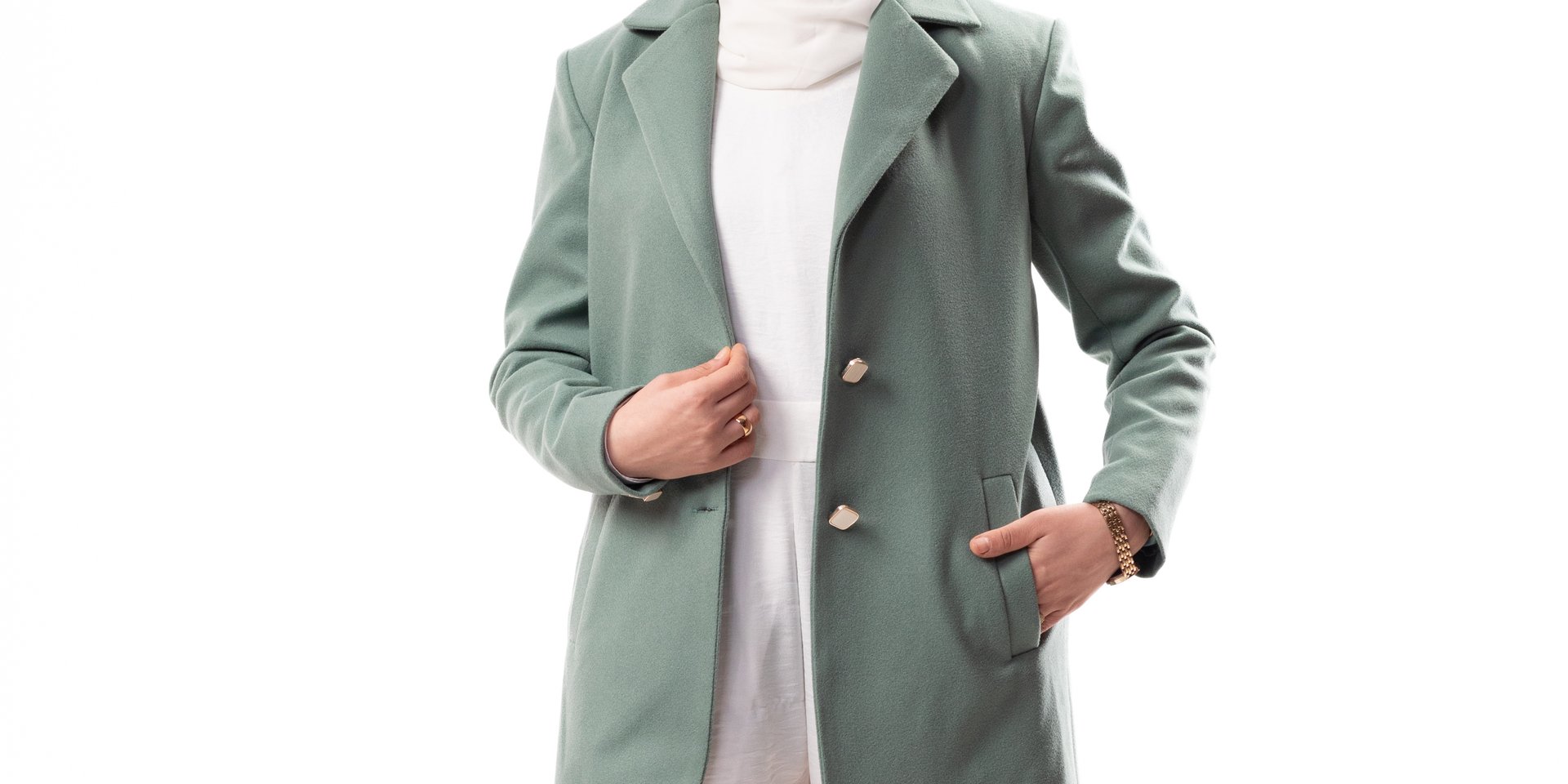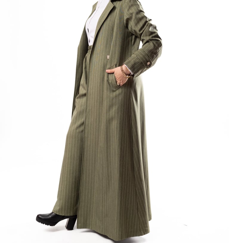 Warm winter layers crafted with premium fabrics for a refined modest look.