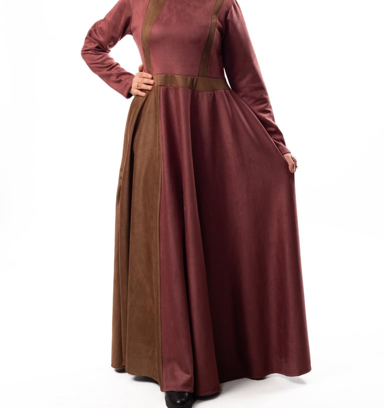 Elegant Winter Suede Dress – Double Flared Fit